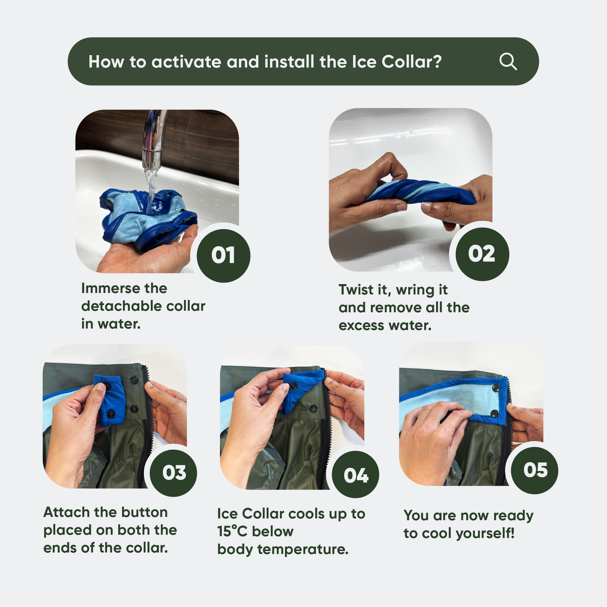 - Ice Collar that cools down to up to 15 degrees below body temperature when wet