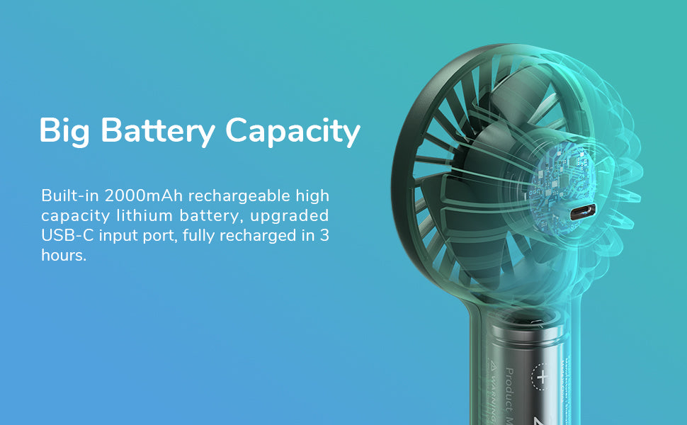 - It is a USB C Type rechargeable fan with only 3 hours to get it fully charged. It supports USB charging by USB charger, car charger, computer, power bank, etc.