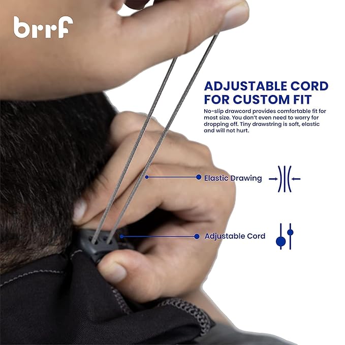 Adjustable Cord for a custom, secure fit. One size fits most men and women. Tiny elastic drawstring. No-Slip drawcord provides a comfortable fit.